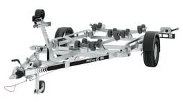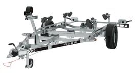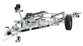 Der PP10-6023 ist ein gebremster, einachsiger Trailer mit bis zu 1 000 kg zulässigem Gesamtgewicht (Nutzlast ≈ 600 kg) – perfekt für Boote bis ca. 6 m Länge.
