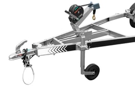 Stützrad & Bugaufnahme: Erleichtert Rangieren und sichert den Bootsbug während des Transports